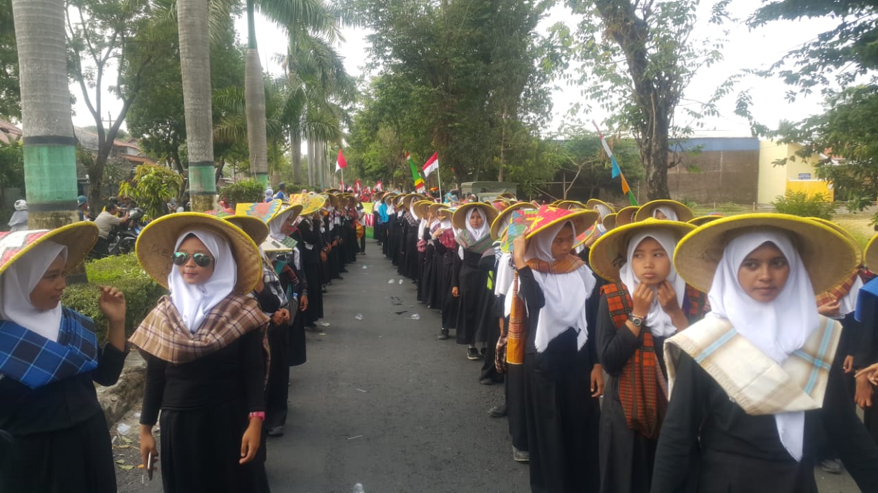 SMP Negeri 2 Talang menampilkan pasukan caping hias hasil dari kreativitas
